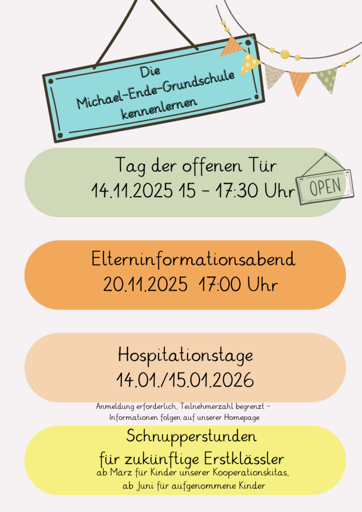 Die Internetseiten der Michael-Ende-Grundschule verwenden Cookies. Cookies sind Textdateien, welche über einen Internetbrowser auf einem Computersystem abgelegt und gespeichert werden. Zahlreiche Internetseiten und Server verwenden Cookies. Viele Cookies enthalten eine sogenannte Cookie-ID. Eine Cookie-ID ist eine eindeutige Kennung des Cookies. Die komplette Datenschutzerklärung finden Sie hier.